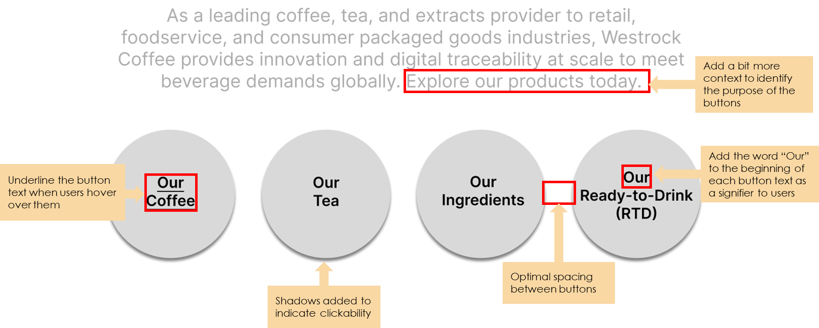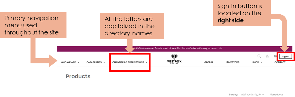 Before the redesign, and as it stands currently, Westrock Coffee Company’s homepage contains a plethora of design miscues that make navigating through its website confusing to its users.