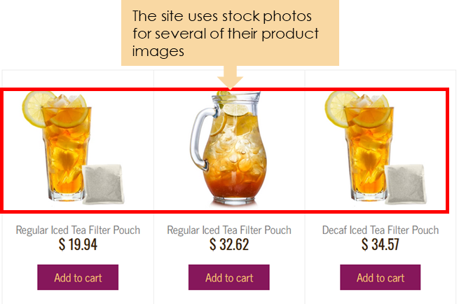 The usability testing also revealed how low-quality stock photos negatively affects users’ perceptions of products. A user expressed: