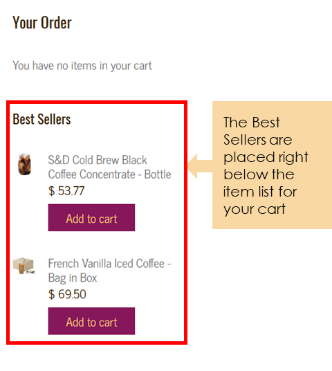 Pictured above: The Best Sellers are located right below the item list for your cart